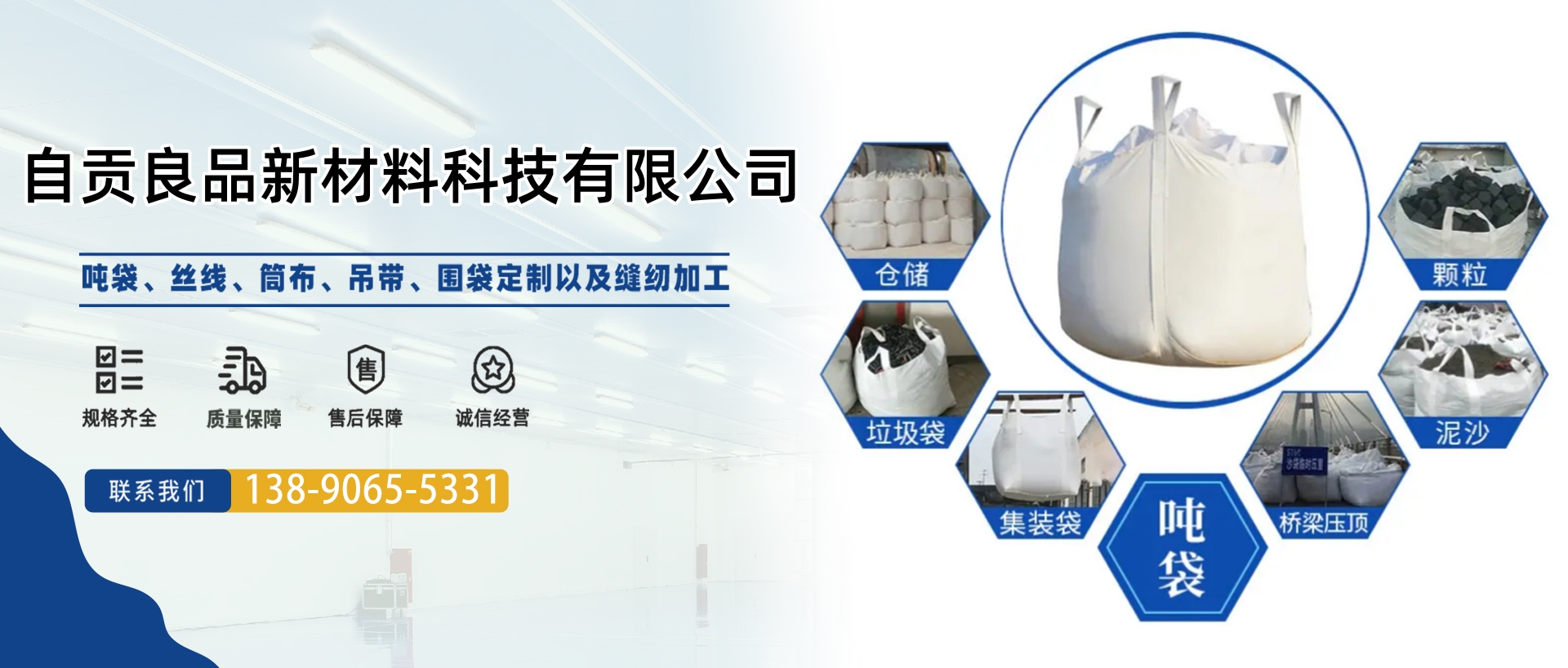 公司簡介 自貢良品新材料科技有限公司位于自貢市貢井區(qū)航空產(chǎn)業(yè)園B4-01-5地塊。成立于2020年4月,占地面積18余畝,生產(chǎn)車間面積約6000平米,目前一線員工百余人。我們專注于集裝袋的研發(fā)、設(shè)計(jì)、生產(chǎn)。產(chǎn)品包括圓形集裝袋、方形集裝袋、拉筋集裝袋、托盤袋、敞口集裝袋等各種定制集裝袋。公司秉持著誠信、創(chuàng)新、分享、拓展的價值觀,為客戶提供系統(tǒng)的包裝解決方案與服務(wù)。 業(yè)務(wù)領(lǐng)域 作為集裝袋行...